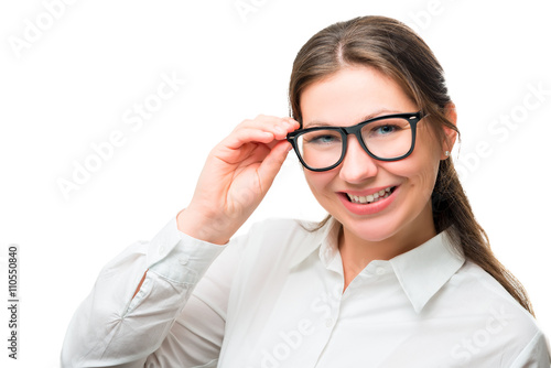 Horizontal portrait of a beautiful businesswoman in stylish glas