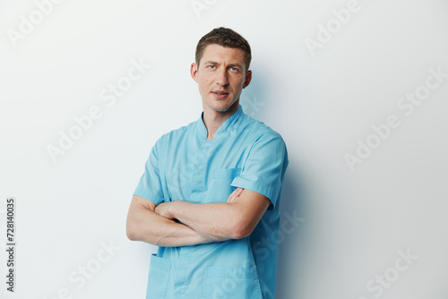 Hospital man guy mature arms friendly confidence uniform clinic senior expertise surgeon positive stethoscope