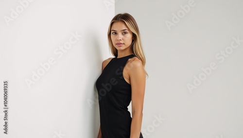 Image features a young African American woman with blonde hair seated in a minimalist white setting