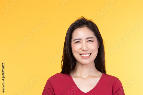 Image of feeling excited, shock, surprise and happy. Young asian woman standing on white background. Female face expressions and emotions body language concept.