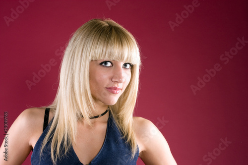 Image of friendly blond over red background