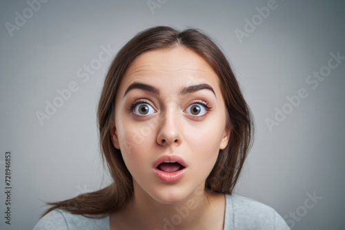 Impressed shocked young lady hearing bad news isolated on gray background