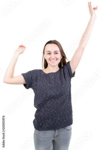 in lifestyle concept portrait of cheerful happy girl with joyful and exciting smiling to camera Isolated on white Background