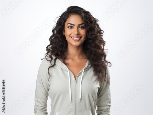Indian Girl Promoting Modern Fitness and Wellness Brand, White Background