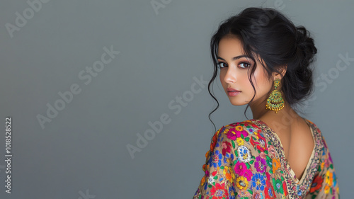 Indian woman wearing traditional middle east kaftan cloth costume