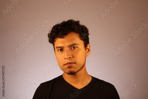joven latino posando en un fondo naranja