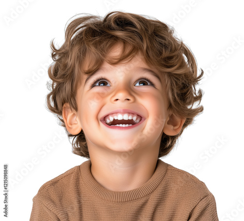 Joyful child with curly hair smiling brightly against a transparent background