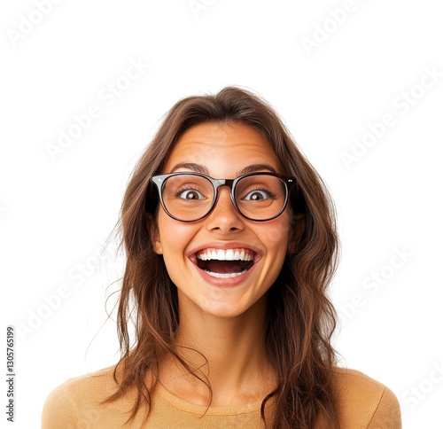 Joyful young woman laughing portrait bright happiness expression isolated on transparent background