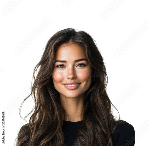 Joyful young woman smiling. Isolated on transparent background, png.