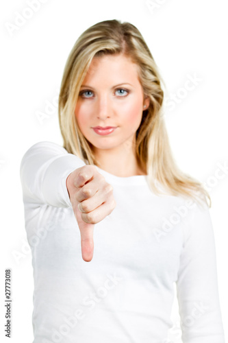 junge frau hält daumen runter