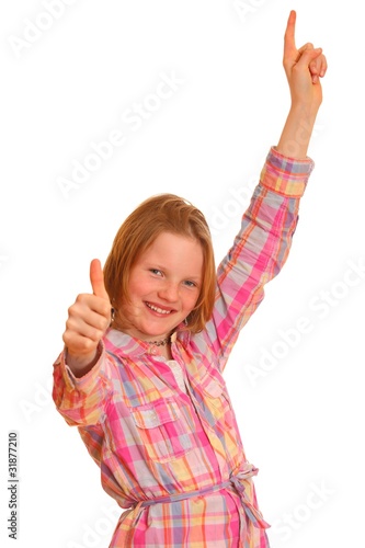 Junges blondes Teenager-Mädchen mit Daumen nach oben