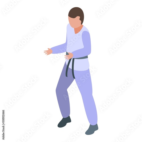 Karate kid icon isometric vector. Self man defense. Martial attack
