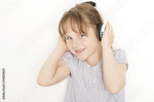 kleines Mädchen hört zuhause Musik
