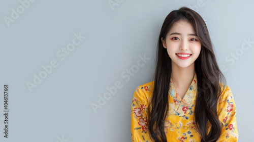 Korean woman wearing traditional huipil tunic mexican guatemala cloth