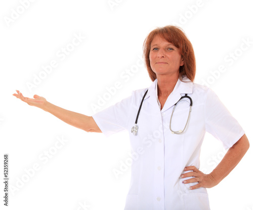 Krankenschwester zeigt zur Seite