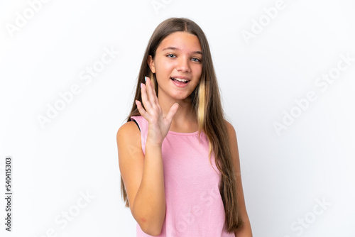 Little caucasian girl isolated on white background shouting with mouth wide open