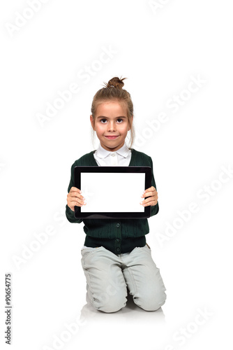 little girl  with blank touch pad