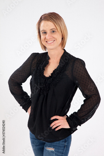 Lovely Blond with her hands on he rhips