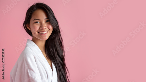 Malay woman in bathrobes, female body care and pampering in hotel spa