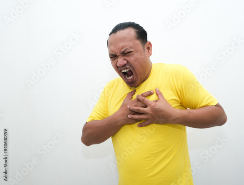 Man have chest pain caused by heart disease, heart attack, heart leakage, coronary heart disease.