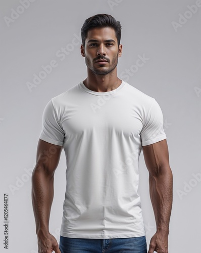 man wearing a plain t-shirt, mockup product photo, casual clothes