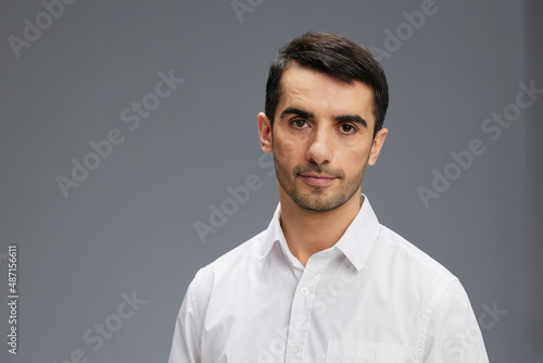 manager in a white shirt a pensive look Gray background