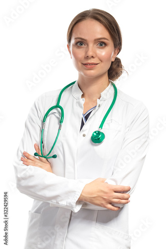 Medicine and Healthcare. Portrait of Confident Professional GP Doctor Posing With Endoscope Against White.