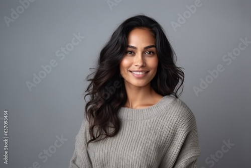 Medium shot portrait of an Indian woman in her 30s in a minimalist background