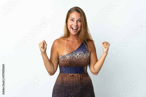 Middle age brazilian woman over isolated background celebrating a victory in winner position