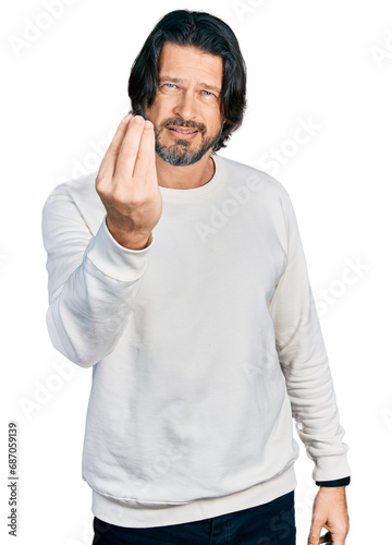 Middle age caucasian man wearing casual clothes doing italian gesture with hand and fingers confident expression
