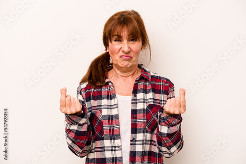 Middle age caucasian woman isolated on white background showing that she has no money.