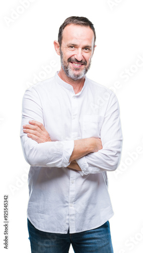 Middle age hoary senior man over isolated background happy face smiling with crossed arms looking at the camera. Positive person.