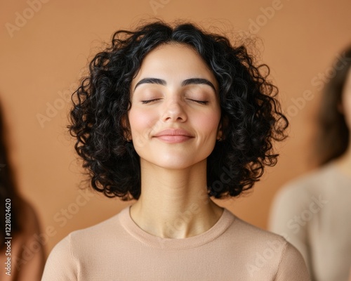 Mindful Office Oasis Indian Woman Leading Micro-Meditation Session for Team Wellness - Warm Tones and Soft Lighting in Corporate Mindfulness Training