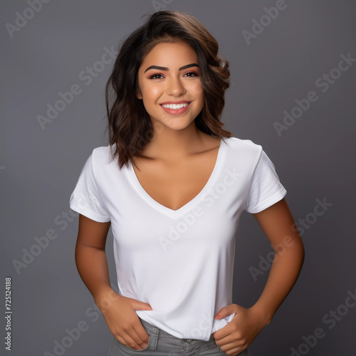 Mockup. Smiling Beautiful Latina Women with D Cup Bra Size