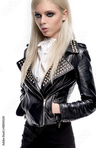 Model in modern outfit in studio