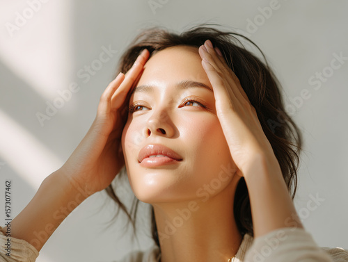 Mujer joven disfrutando de la luz natural con expresión relajada