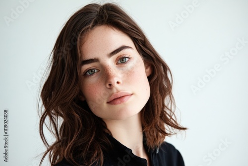 Natural Beauty Portrait of a Young Woman with Freckles and Wavy Hair