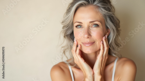 Natural Beauty Portrait of Mature and Middle-Aged Woman in Elegant Studio Lighting for Skincare and Anti-Aging Product Advertisements
