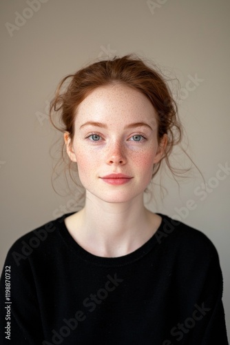Natural Beauty Portrait Realistic Skin Texture Highlighting Freckles in Minimalist Setting - Empowering Beauty Industries with Authentic Visual Content