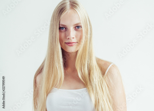Natural makeup healthy skin and hair blonde woman beauty face portrait