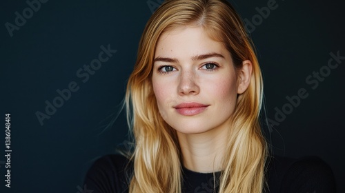 Natural Portrait of a Young Woman with Long Blonde Hair Smiling