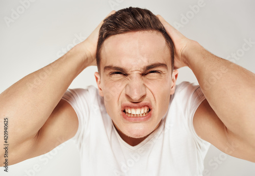 Nervous man touches his head stress Model of emotion