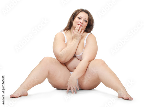 Overweight woman dressed in bikini.