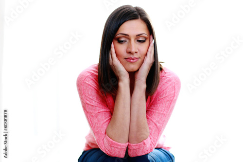 pensive woman isolated a white background