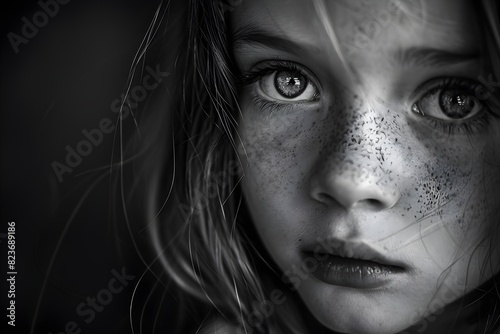 Pensive Young Girl with Freckled Face Gazing Pensively
