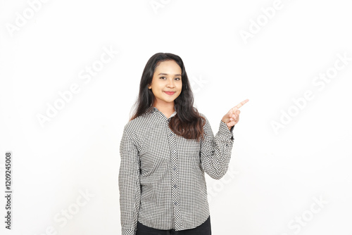 Pointing to the Side Of Beautiful Asian Woman Isolated On White Background
