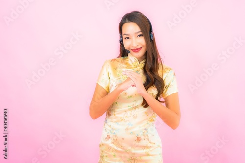 Portrait beautiful young asian woman customer call center care