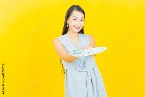 Portrait beautiful young asian woman smile with a lot of cash and money