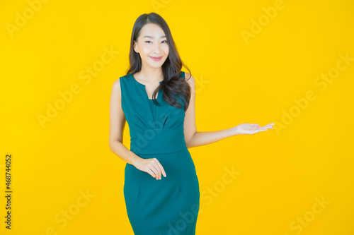 Portrait beautiful young asian woman smile with action