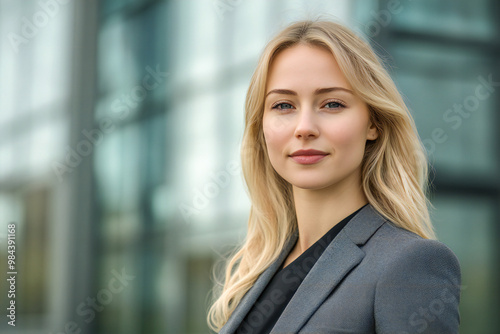 Portrait of a beautiful blonde European woman in outdoor costume. Business woman waist portrait